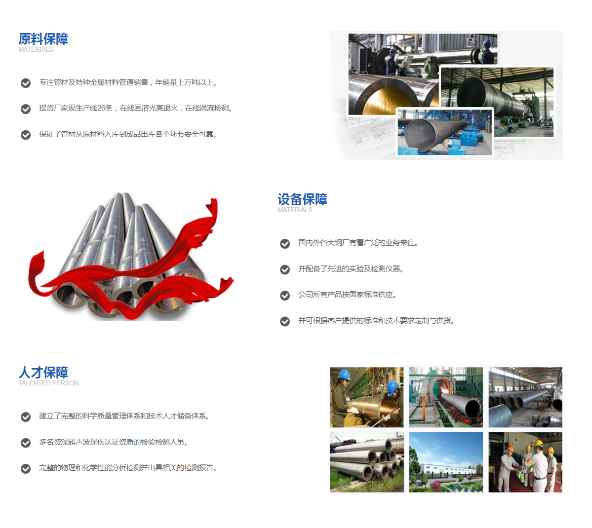 山東鑫盛鑫鋼鐵有限公司是一家專業銷售:無縫鋼管,合金管,異型管,精密管,圓鋼,軸承鋼的大型無縫鋼管廠廠家。可定做,多種規格,多種型號的無縫鋼管。另常年兼營成都、包鋼、冶鋼、魯寶、鞍鋼、安陽、洪都、天津等幾大鋼廠的國產進口的無縫鋼管、無縫管、流體鋼管、直縫焊管,經營品種多、規格齊全,保質保量,常年庫存保有量7000噸以上。所售產品均執行國家標準,適用于工程、煤礦、紡織、電力、鍋爐、機械、軍工等各個領域。公司始終堅持“公正、客觀、科學、誠信”的經營原則,重合同、守信譽、保質保量、按期交貨”。多年來公司憑借良好的信譽、優質的產品、低廉的價格享譽全國30多個省、市、自治區,產品出口歐洲、南美等十多個國家,深得用戶信賴!  常備材質:20#、45#、20G、16Mn、27SiMn、12Cr1MoVG、15CrMo、T91、10CrMo910、STFA25(P5)、STFA26(P9)、P11、P12、A335P91、A335P92、WB36[15NiCuMoNB5]、鋼研102(12Cr2MoWVTiB)等。執行標準為:結構管GB8162-1999、流體管GB8163-1999、低中壓鍋爐管GB3087-1999、液壓支架管GB17396-1999、高壓鍋爐管GB...